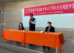 台中市政府教育局與台中市全人家長會長協會合作,今(2)日至8日在台中二中、清水高中、慈明高中、東勢高工及忠明高中共辦理5場次校長增能研習,邀請檢察事務官、律師及資深教師擔任講師,讓公私立高、國中小校長們在面對校園職場霸凌及教師不當管教或教學不力事件時,能有正確的法治意識及專業素養。 教育局長蔣偉民說,市長盧秀燕非常重視校...... [閱讀更多]