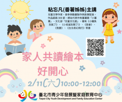 翻讀繪本、説故事,不只是大朋友讀給小朋友聽的床邊故事時間,還可以成為家人日常輕鬆的互動和情感交流的潤滑劑。打開一本繪本也打開彼此的心窗,讓愛和光的溫暖擁抱彼此!青發家教中心2月11日上午舉辦「家人共讀繪本好開心」講座,由兒童文學作家粘忘凡(番薯姊姊)主講,邀請大家一起來共學同...... [閱讀更多]