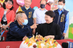 台中市長盧秀燕今(14)日拜訪彩虹爺爺黃永阜先生,祝賀黃爺爺一百歲生日快樂!盧市長看見黃爺爺身體健康非常高興,她說,黃爺爺是榮譽市民,1月16日是他百歲生日,市府今日特別幫黃爺爺過壽,祝福他松柏長青、身體健康;很高興看到黃爺爺在家人及退輔會照顧下,耳清目明、思緒清晰,飲食及生活相當正常。黃爺爺也許下生日願望,希望至少活到120歲...... [閱讀更多]