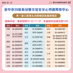 農曆春節將屆,為守護市民健康及安全,台中市各區級關懷中心專線諮詢服務春節不打烊,仍持續安排專人協助確診民眾居家照護隔離期間生活問題,陪伴市民平安過好年。民政局長吳世瑋表示,今年春節適逢近十年來最長年假,考量國際疫情未穩定,市府防疫不鬆懈,春節期間持續受理諮詢服務,協助處理居家照護者相關生活事務,請居家照護者放心。 吳局長...... [閱讀更多]