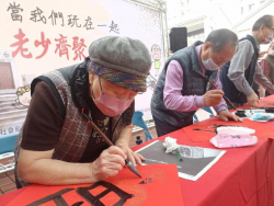 春節年味漸濃,台中市政府社會局所屬長青服務中心今(11)日舉辦兔年開筆揮毫活動,邀請書法家徐松森及李日進、銀髮族代表蔡爺爺與江奶奶一起揮毫春聯贈送長輩,還有立人國中國樂社及熱舞社表演、卡帕立人幼兒園闖關活動和財神爺摺紙DIY,副局長陳坤皇出席與社區民眾同歡,祝福大小朋友兔年錢兔似錦,鴻兔大展。 今日闖關活動上,80歲的盧...... [閱讀更多]