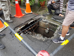 羅東鎮中山西街路面出現大窟窿 鎮公所緊急派人維修