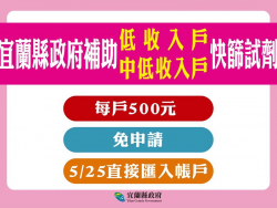 宜蘭新增525例 縣府補助全縣約5000低收戶500元購買快篩劑!