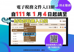 新聞中心/整理 財政部原建置的電子稅務文件入口網,將在111年1月4日起停止服務,目前該網站相關申辦電子稅務文件功能已整併至財政部稅務入口網項下,宜蘭縣政府財政稅務局表示,新的財政部稅務入口網之電子稅務文件功能,可提供24項地方稅線上申辦服務,民眾如需地方稅繳款書、稅籍證明或驗證相關服務時,可至「財政部稅務入口網」首頁/線上服務/電子稅務文件(https://www.etax.na...... [閱讀更多]