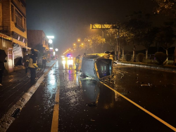 記者林周龍/蘇澳報導 蘇澳鎮中山路二段昨天(12日)夜間10點16分許,一輛廂型車撞及路邊民宅,整台車側翻幾乎全毀,被撞的民宅鐵捲門也嚴重凹陷,警方獲報後趕到現場,但只發現撞毀的廂型車側翻在馬路中央,肇事車主不見蹤跡,警方已調閱周邊監視器,並通知車主到案說明。 蘇澳分局表示,這起車禍發生在昨天夜間10時16分許,一部肇事廂型車沿省道台9線從冬山往蘇澳方向行駛,行經蘇澳鎮中山路二...... [閱讀更多]