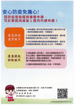 安心防疫免擔心!因防疫措施遲誤復查申請,可於原因消滅後1個月內補申請!
