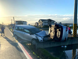 兩車行經路口未注意來車 撞翻了!