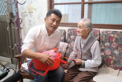 羅東鎮百歲人瑞 吳秋齡親贈禮金及豬腳麵線