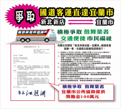 宜蘭市提供100萬獎金希望國道客運業者開闢宜蘭新店班次