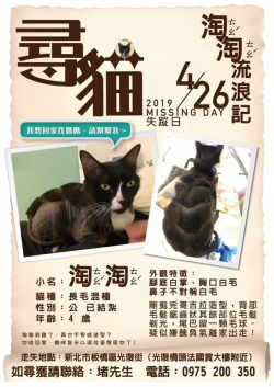 尋找貓咪~淘淘 地點 新北市板橋區 Banqiao , New Taipei