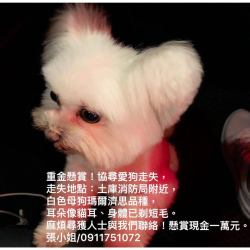 尋找瑪爾濟斯~bebe 地點 雲林縣土庫鎮 Tuku , Yunlin ,Maltease 【尋找瑪爾濟斯~bebe 地點 雲林縣土庫鎮】 轉貼內容瑪爾濟斯 母狗 白色 小型犬名字:bebe耳朵像貓耳 毛剃過是短毛 無晶片如果有人看到請跟我們聯絡!孫小姐 0979131855…https://twpetsearch.arlinks.net/2019/02/bebe-tuku-y...... [閱讀更多]