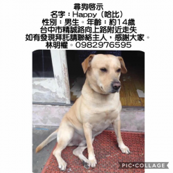 尋找狗狗~Happy 地點 台中市西區 West , Taichung 【尋找狗狗~Happy 地點 台中市西區】 轉貼內容「協尋啟事」聯絡電話 0982976595…https://twpetsearch.arlinks.net/2018/12/happy-west-taichung.html [embedd...... [閱讀更多]