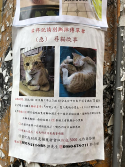 尋找貓咪~ 地點 台中市太平區 Taiping , Taichung 【尋找貓咪~ 地點 台中市太平區】 轉貼內容#台中太平走失協尋幫推文 請直接聯絡圖中郭先生郭小姐聯絡電話 0918211868 0980678711…https://twpetsearch.arlinks.net/2018/11/taiping-taichung.html ...... [閱讀更多]