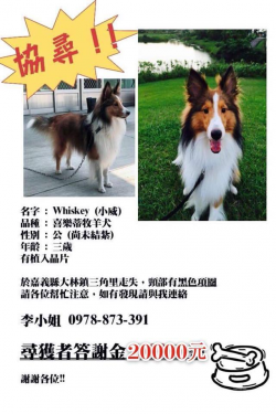 尋找喜樂蒂~小威 地點 嘉義縣大林鎮 Dalin , Chiayi ,Sheltie 【尋找喜樂蒂~小威 地點 嘉義縣大林鎮】 轉貼內容我好想你,小威已經走失三個月了⋯麻煩各地區的朋友,多加幫我注意????非常謝謝大家。聯絡電話 0978873391…http://twpetsearch.arlinks.net/2018/07/dalin-chiayi-sheltie.html...... [閱讀更多]