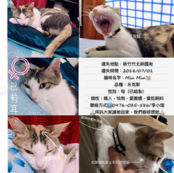 尋找貓咪~Miu Miu 地點 新竹縣竹北市 Zhubei , Hsinchu