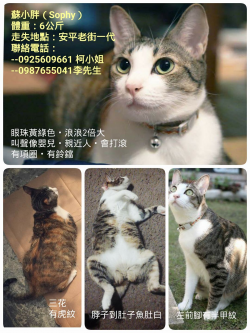 尋找貓咪~Sophy 地點 台南市安平區 Anping , Tainan