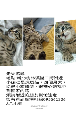 尋找貓咪~小MIKO 地點 新北市樹林區 Shulin , New Taipei