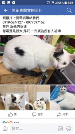 尋找貓咪~斑斑 & 小不點 地點 花蓮縣花蓮市 Hualien , Hualien 【尋找貓咪~斑斑 & 小不點 地點 花蓮縣花蓮市】 轉貼內容請幫忙找回她的家人,拜託!謝謝?09195241270977697162 #都是白貓#橘色項圈有寫斑班#藍色項圈有寫小不點…http://twpetsearch.arlinks.net/2018/04/hualien...... [閱讀更多]