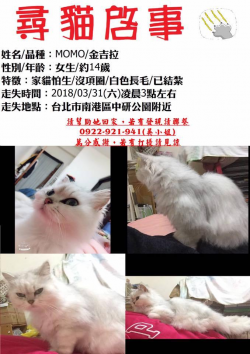 尋找金吉拉~MOMO 地點 台北市南港區 Nangang , Taipei ,Chinchilla Persian 【尋找金吉拉~MOMO 地點 台北市南港區】 轉貼內容尋貓。請幫幫我!聯絡電話 0922921941…http://twpetsearch.arlinks.net/2018/04/momo-nangang-taipei-chinchilla-persian.htm...... [閱讀更多]