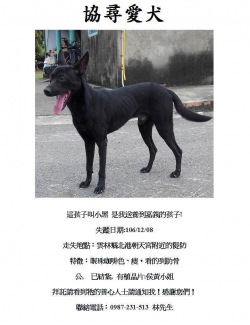 尋找狗狗~小黑 地點 雲林縣北港鎮 Beigang , Yunlin