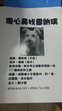 尋找雪納瑞~糖糖 地點 新北市土城區 Tucheng , New Taipei ,Schnauzer