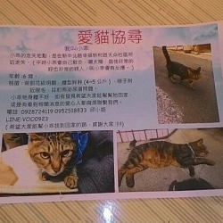【尋找貓咪~虎妹 地點 台中市中區】 轉貼內容!!!!!!急!!!!!!尋找走失貓咪-虎妹6/11凌晨從店裡跑出去失蹤地點:台中市中區中華路一段106號特徵:脖子上掛個貓咪鈴鐺請住在台中市中區和有在中華路艋舺雞排附近上班的朋友幫忙留意一下 感謝你們???聯繫電話:0930989252Line:z0815拜託大家了。。。。http://twpetsearch.arlinks.net/201...... [閱讀更多]