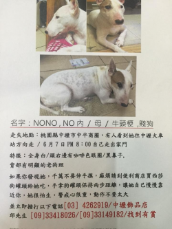 尋找牛頭梗~nono 地點 桃園市中壢區 Zhongli , Taoyuan Bull Terrier