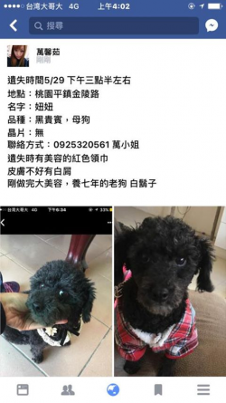 尋找黑貴賓~妞妞 地點 桃園市平鎮區 Pingzhen , Taoyuan ,Poodle