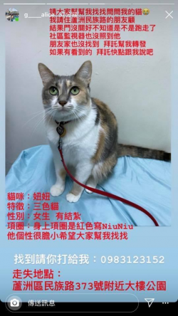 尋找貓咪~妞妞 地點 新北市蘆洲區 Luzhou , New Taipei
