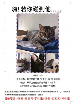 2017-05-24 07:19:02 by 寵物協尋 @ 寵物協尋 [引用來源]