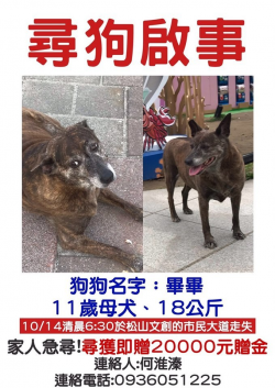 尋找狗狗~畢畢 地點 台北市松山區 Songshan , Taipei