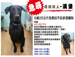 【尋找拉布拉多犬~漢堡 地點 新北市淡水區】 轉貼內容Dear All,我們家漢堡迷路了,需要您的幫忙。漢堡是6歲左右的拉不拉多混種狗,全黑,大約25公斤重,項圈為藍/紅色條紋並有一個黑色LED燈繫在項圈上(與附圖同款式),4/21(五)下午自淡水糞箕湖133巷賓士園走失,不遠處的一面是北投復興三路,另一面是三芝,煩請北投/淡水/三芝區的朋友們協助留意,如有看到漢堡請先留住牠並通知我們,...... [閱讀更多]