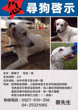 尋找拉布拉多犬~蔡蔡子 地點 台中市潭子區 Tanzi , Taichung ,LabradorRetriever