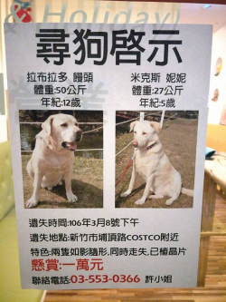 尋找拉布拉多犬~饅頭 & 妮妮 地點 新竹市東區 East , Hsinchu ,LabradorRetriever