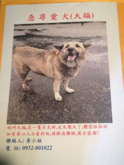 【尋找狗狗~大福 地點 新北市汐止區】 轉貼內容麻煩新北市汐止區的朋友幫忙注意這隻大福走失了!有晶片在大同路三段走失,有遇見請聯絡飼主,感恩聯絡電話 0932801022http://twpetsearch.arlinks.net/2017/02/xizhi-new-taipei.html ... [閱讀更多]