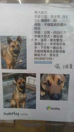 尋找狗狗~ 地點 桃園市平鎮區 Pingzhen , Taoyuan