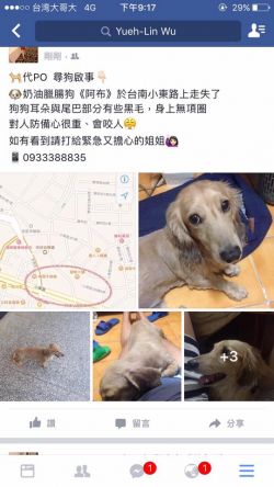 尋找臘腸犬~阿布 地點 台南市永康區小東路