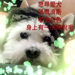 【尋找瑪爾濟斯~ 地點 台南市永康區北灣里文賢街227巷口】 轉貼內容請幫忙分享急尋愛犬 張美金走失地點 台南市永康區北灣里文賢街227巷口請附近能否協助廣播有血統證明的瑪爾濟斯白色 公狗 老狗 但目測是活潑可愛的目測約5公斤左右身上毛剛美容沒多久 所以有修毛目前還沒長很長比該照片略短 身上有約雞蛋大小的脫毛處 該處可清楚看見粉紅皮膚胸部有寵物藍色套繩不會咬人 昨天早上發現不見 前一天不...... [閱讀更多]
