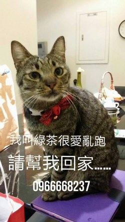 【尋找貓咪~綠茶 地點 台中市潭子區中山路一段七巷】 轉貼內容拜託幫我留意我的貓兒子,走失於台中市潭子區中山路一段七巷牠在2016/2/15號我下班回家,就找不到牠了,平常牠都會和弟弟妹妹在家裡等我的,那天我比平常晚下班,不知道是不是那個笨蛋去找我了…牠是一隻非常愛出門的貓,但總是找的到回家的路,我想這次,牠迷路了。牠叫綠 茶 ,有晶片,已結紮,是公貓,體型瘦長,走路外八,眼神非常的不屑...... [閱讀更多]