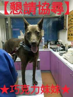 【尋找狗狗~巧克力 地點 新北市中和區環球購物中心】 轉貼內容☆巧克力妹妹☆已結紮☆有晶片(登記者為代領出的何小姐)晶片號碼:900138000784111 ☆走失時間:2016。09。17 ~ 13:50左右☆走失地點:新北【中和環球購物中心】附近☆身上配件:無。〖因拖倒愛媽,掙脫項圈〗☆聯絡電話:0903358871 曾小姐 ☆巧克力親人乖巧,完全沒有攻擊性~請各位看到牠幫忙留住...... [閱讀更多]