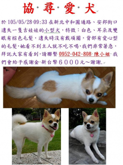 協尋獎金 6000 元 尋找吉娃娃~ 地點 新北市中和區圓通路
