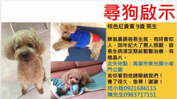 協尋獎金 20000 元 尋找貴賓犬 地點 台中市北區漢口路崇德路口