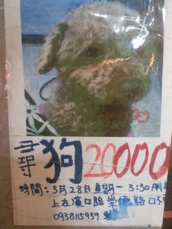 【協尋獎金 20000 元 尋找貴賓犬 地點 台中市北區漢口路崇德路口】 轉貼內容聯絡電話 0938115939http://twpetsearch.arlinks.net/2016/05/20000-taichung-north-poodle.html ... [閱讀更多]