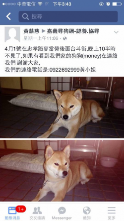 【尋找柴犬~money 地點 嘉義市東區台斗街】 轉貼內容聯絡電話 0922692999http://twpetsearch.arlinks.net/2016/05/money-jiayi-east.html ... [閱讀更多]