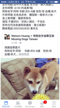 【尋找柴犬~地點 台中市大里區永大街】 轉貼內容聯絡電話 0920262830http://twpetsearch.arlinks.net/2016/05/taichung-dali-shibainu.html ... [閱讀更多]