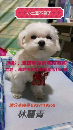 【尋找狗狗~土豆 地點 高雄市前金區聖亞哥商務旅館】 轉貼內容飯店的副理說狗狗不見了,表示跟你無緣,還建議我不要養狗。唉……小土豆我的愛狗狗兒子不見了,一個人感到好孤寂,這世界還有天理嗎!為何不把我已經植晶片,用心照顧的狗兒子還我,他是我的唯一,也是我哭泣的肩膀……???日期:2016.02.28-2016.03.28姓名:土豆 性別:弟弟 體重:約1.7kg 品種:杯子犬 馬爾濟思。就...... [閱讀更多]