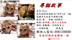 尋找貓咪~Nico 地點 高雄市大社區 Dashe , Kaohsiung