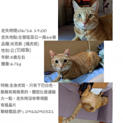 尋找貓咪~ 地點 高雄市左營區 Zuoying , Kaohsiung 【尋找貓咪~ 地點 高雄市左營區】 轉貼內容聯絡電話 0962090521…https://twpetsearch.arlinks.net/2019/06/zuoying-kaohsiung_22.html [embedded conten...... [閱讀更多]