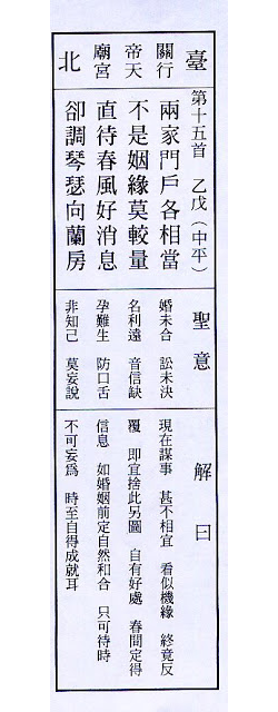 行天宮解籤詩 第十五籤【 中平。乙戊】