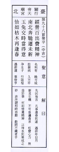 行天宮解籤詩 第九八籤【 中平(中吉)。癸辛】